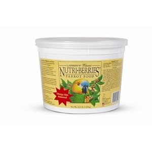 Maximum Nutrition. Minimum Waste.Veterinarian recommended Nutri-Berries are the most fun-to-eat, easy to accept food ever made. These nutritious nuggets have the shape birds naturally enjoy and a balanced, superior source of nutrition with an irresistible taste and aroma.Better Health For Your Parrots.Proper nutrition is critical to the good health and long life of your parrots. Nutri-Berries were formulated by Dr. T. J. Lafeber and an avian nutritionist for that very reason. They contain only nutritious natural ingredients like hulled canary seed, cracked corn and safflower blended with savory peanuts, rolled into berry-shaped pieces and coated with vitamins, minerals, carbohydrates, and protein.Minimize Leftovers and Mess.These colorful, richly textured and invitingly shaped treats have a difference your bird can see, taste and touch. Your bird will thrive on the stimulation and beak exercise Nutri-Berries provide. The round shape helps assure that Nutri-Berries will supply the dietary needs of your bird. Nutri-Berries were designed to change your bird's bad eating habits, like picking out some seed and ignoring the others. Nutri-Berries are actually 96% eaten, meaning more nutrition for your bird and less waste on the floor for you.Packed in freshness sealed bucket with tight fitting lid.